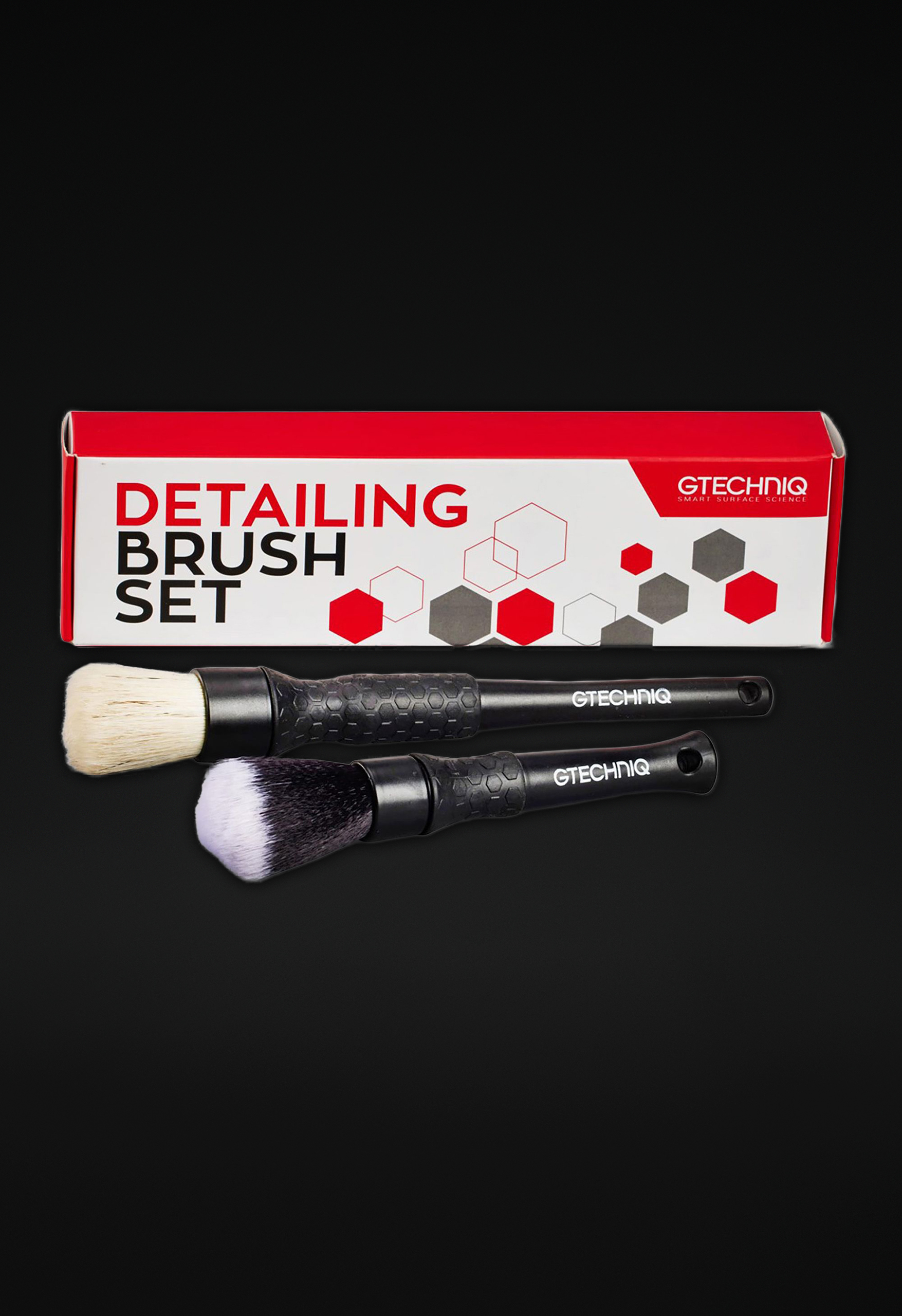 Das Gtechniq Detailing Brush Set enthält zwei Detailing Pinsel, die für den Außen- und Innenbereich geeignet sind. Die Griffe der beiden Bürsten sind aus strapazierfähigem Kunststoff gefertigt und daher sehr langlebig. Der gummierte Griff sorgt dafür, dass jede Bürste gut ausbalanciert ist und der Benutzer eine bessere Kontrolle bei der Arbeit hat.