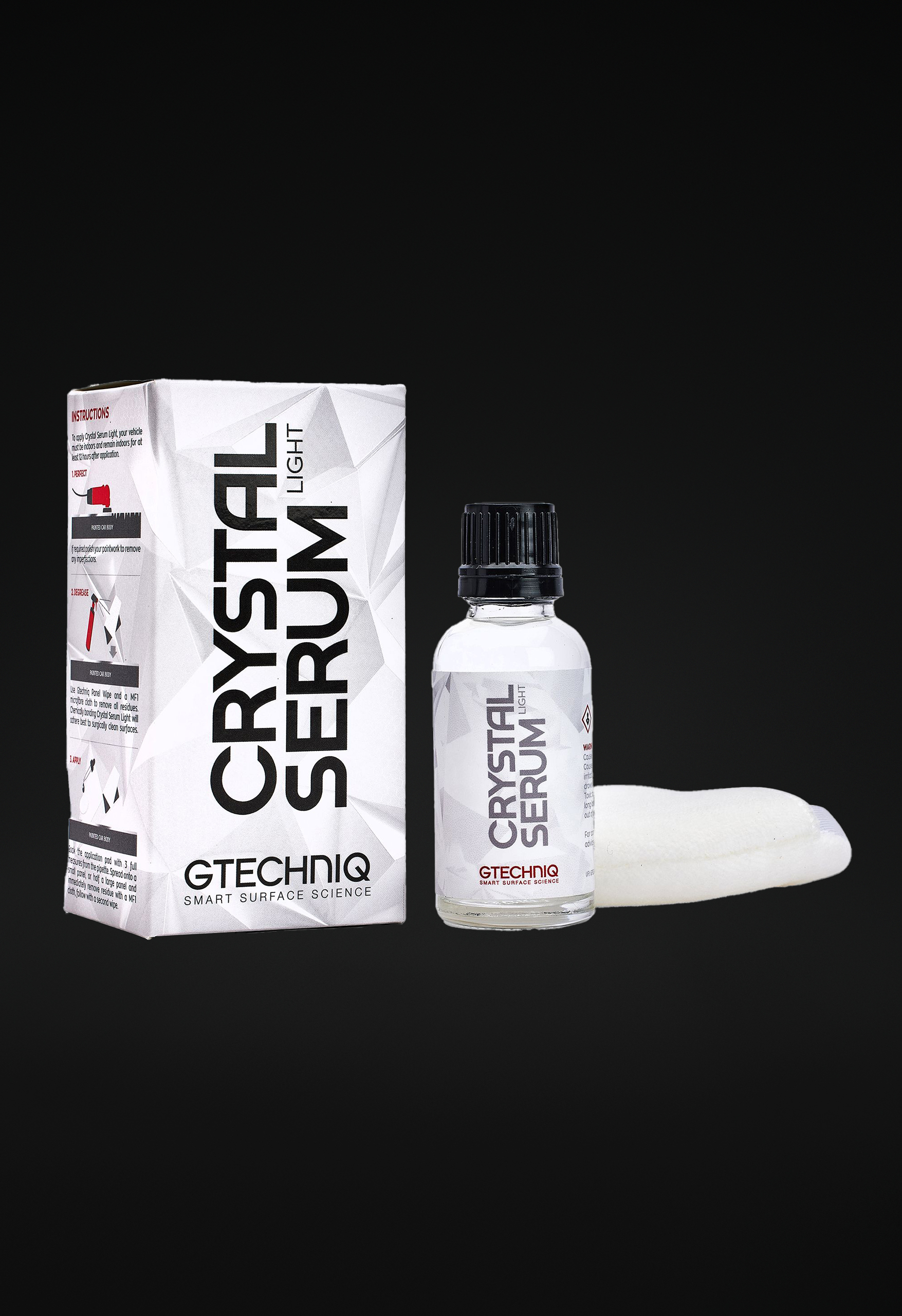 Crystal Serum Light auch kurz Gtechniq CSL genannt ist eine keramische Versiegelung für Professionelle und erfahrene Endanwender (englisch „Prosumer“). Das Produkt leitet sich als Light-Version vom weltberühmten Crystal Serum Ultra ab, das ausschließlich über zertifizierte Gtechniq Accredited Detailer zu verarbeiten ist. CSL bietet etwa 80% der Schutzleistung von Crystal Serum Ultra. Im Gegensatz von Crystal Serum Ultra kann Crystal Serum Light mit einer Poliermaschine abgetragen werden, was bei Crystal Serum Ultra nicht möglich ist.